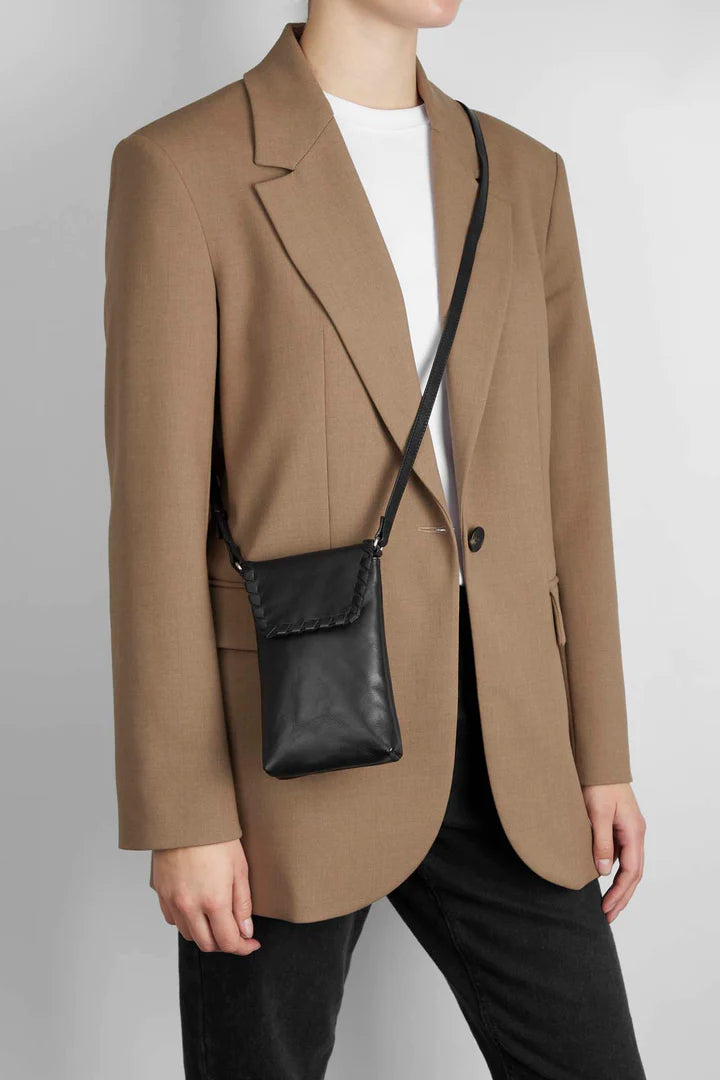 LuccaMBG mobiltaske med rem. Whipstitch model. Sort. Læder. Markberg