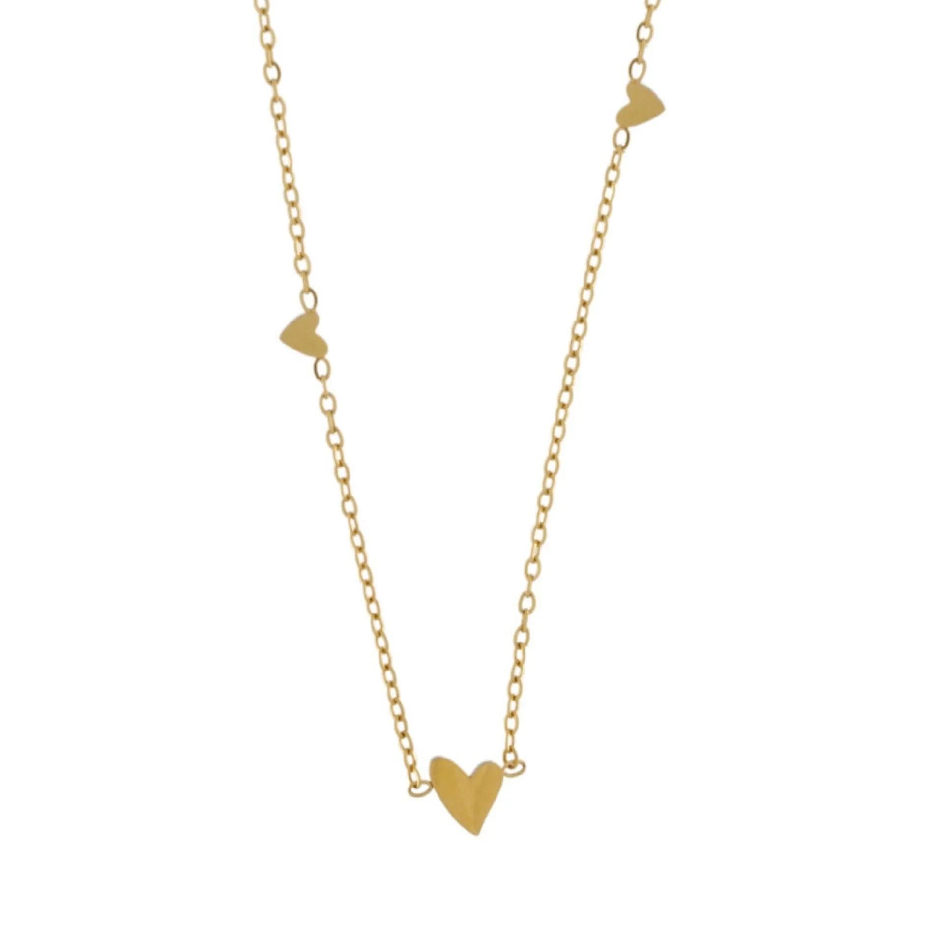 Love Waterproof 3 Mini Heart halskæde. 18K guld plating. Dansk Copenhagen