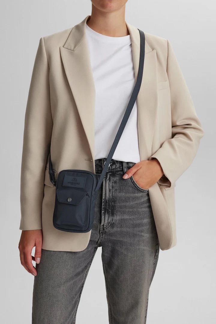 Cute mobile phone bags in monochrome color. The bags have a small pocket on the front and three card holders inside. The bags are durable and water-repellent. Closes with a zipper and has an adjustable crossbody strap.